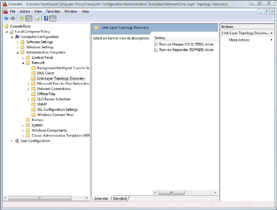 Nói về công nghệ, việc kích hoạt bộ Mapper I/O (LLTDIO) Driver khá hiệu quả cho việc kích hoạt sơ đồ hóa mạng. Khi triệu gọi qua, sẽ có một thiết lập chính sách nhóm khác có sẵn cho bạn. Bộ Mapper I/O (LLTDIO) Driver cho phép sơ đồ hóa mạng của bạn nhưng bộ đáp trả Responder (RSPNDR) Driver (thành phần được điều khiển bởi thiết lập chính sách nhóm thứ hai) sẽ cho phép chép thông tin từ các thiết bị trên mạng. Một số chi tiết về thiết bị mà bạn có thể rút ra bao gồm có số model và hãng sản xuất của thiết bị.